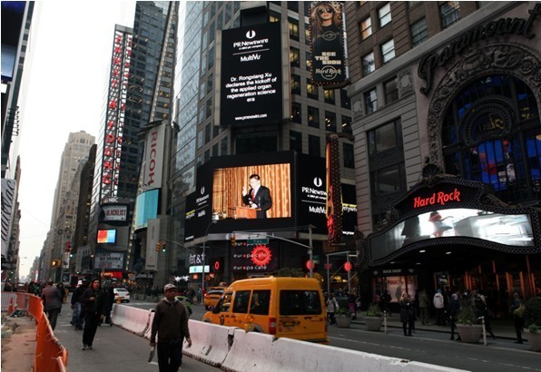The photo of Dr. Xu¡¯s speech on organ regeneration science was once again published on Times Square. ¡¡Dr.Rongxiang XU Decleres Kickoff of The Applied Organ Regeneration Science Era¡±. On Oct. 30th of 2013, the huge photo of Dr. Xu was published on Times Square when Reuters published news about his invention of organ regeneration science. And, on another huge screen, a line of big words ¡°Dr. Rongxiang Xu Declares Kickoff of the Applied Organ Regeneration Science Era¡± was published. Dr. Xu declares the beginning of human organ regeneration science era. And, this is the sixth time that Reuters publishes his photo on Times Square.